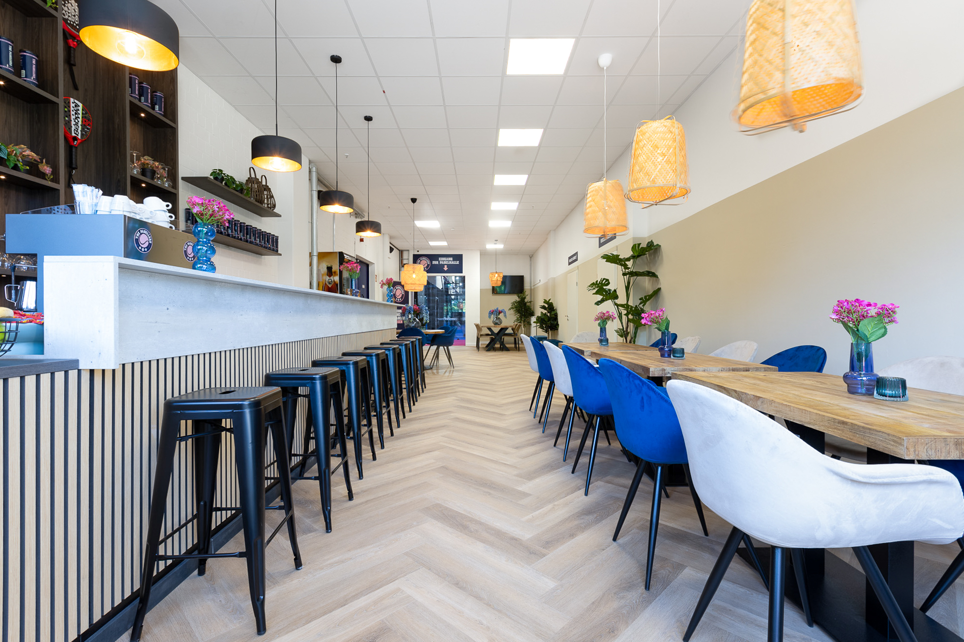 The Padellers Essen offers a fantastic indoor venue with 7 padel courts. Our location is open 7 days a week, from morning until evening. But that's not all! You can also enjoy a cozy lounge area with a bar, spacious changing rooms with showers, and plenty of parking. In short, it’s the perfect place to play a game of padel in Essen.